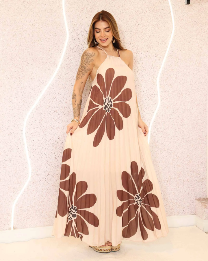 Vestido Longo Plissado Floral – Elegância e Leveza